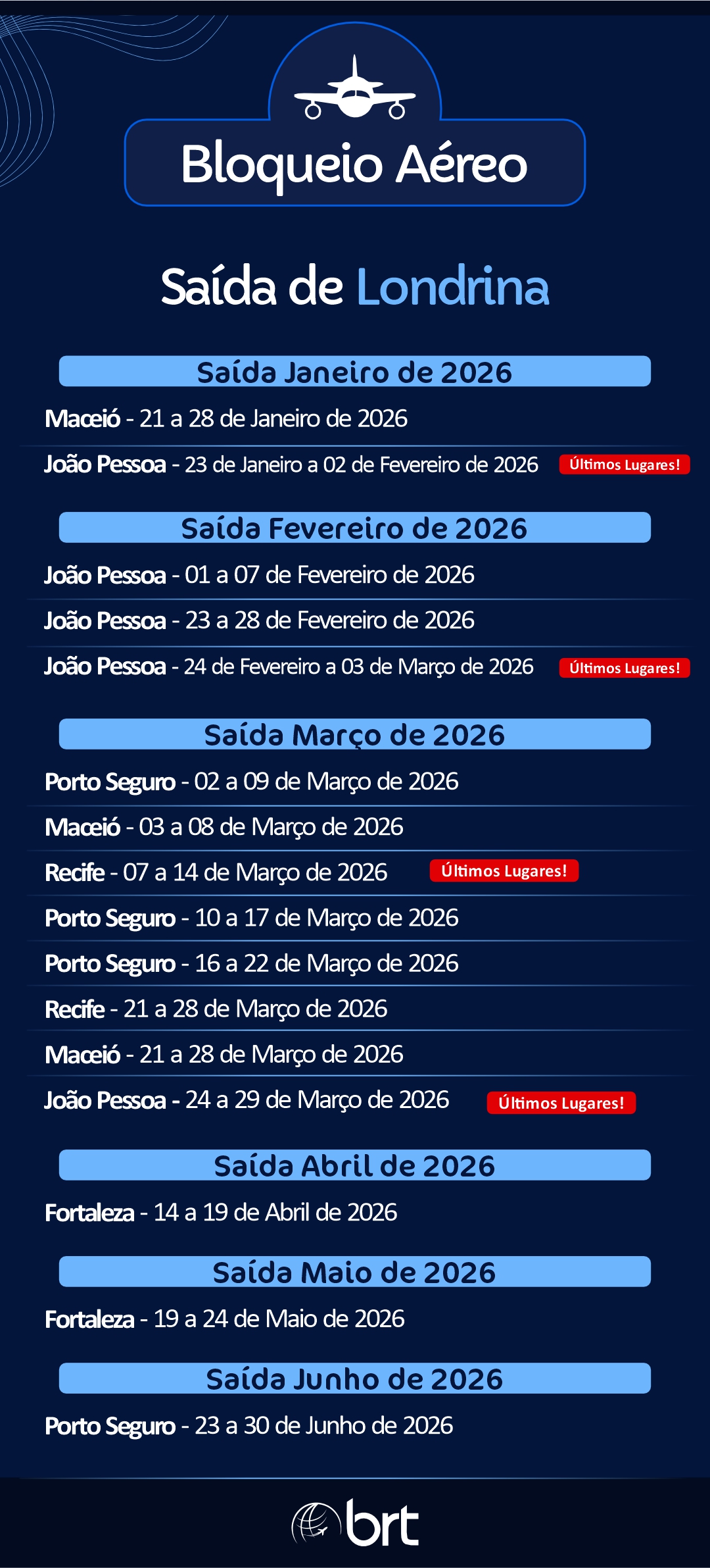 Lista de Bloqueios - Nacionais | Saídas de Londrina